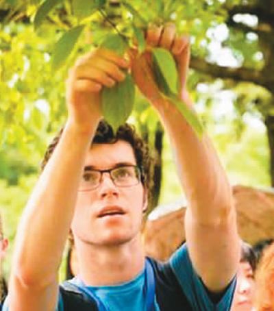 上海交通大学推出的英文版中医药慕课课程,分为线上和线下学习两个阶段。图为学员们在植物园内亲手触摸观察各种中草药植物。