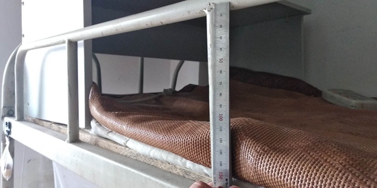记者采访中,便有一家声称为多所大学供应过双层上下铁床的厂商表示,自家铁床护栏高度达到235mm,比其他厂家产品高20%左右。而没有标准傍身的脚踏板,则采用1.2mm厚冷轧钢板经冲压而成。