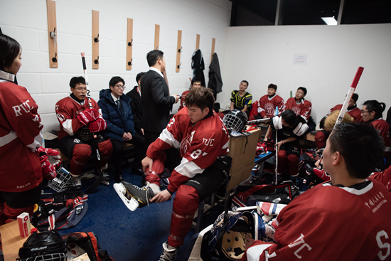 11月10日,北京北五环外一家冰上运动中心,中国人民大学冰球队的队员们在更衣室中总结刚刚结束的比赛,他们最终以一球的优势惊险获胜。当天,2019中国大学生冰球锦标赛正式开幕,来自全国15所高校的300余名球员参赛,其中大多数球员在今年6月开始备赛前并没有冰球运动经验。