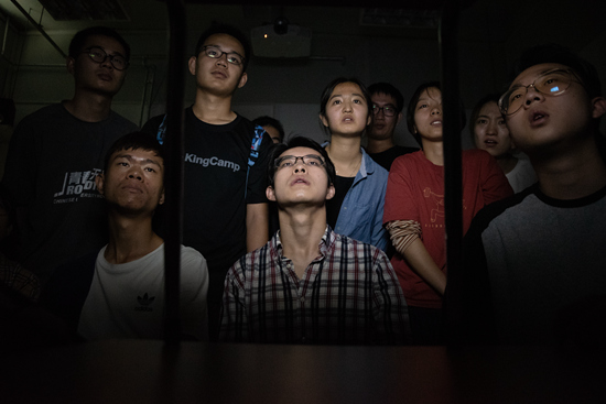 9月25日,中国人民大学,结束当天训练后,冰球队员们在笔记本电脑上观看职业冰球比赛的录像回放。在此之前,队中多数球员没有看过正式的冰球比赛。
