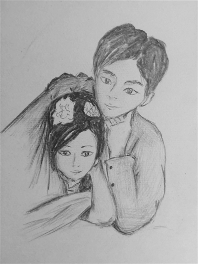采访中姜玟澈向记者展示了三幅作品,记者注意到,这三幅作品记录了姜玟澈的父母在岁月流逝中的容颜变化。“第一张是他们结婚时的模样,第二张是他们初为父母时的模样,第三张则是他们现在的样子。”姜玟澈说,给父母画速写,每一笔都不马虎,尽可能细致地表现出父母容貌的变化。第一幅画中的父母正值青春,脸上洋溢着活力,眼眸中还有些许青涩。第二幅画,父母的脸上洋溢着笑容,充满了迎接小生命的欢喜。他们少了年轻人的冲动,多了力量与沉稳,多了厚重的责任感。最后一幅,岁月已在他们脸上留下了印记,他们的皱纹若隐若现,眼角下垂,但时光让他们慢慢沉淀下来,有一种岁月静好的幸福感。