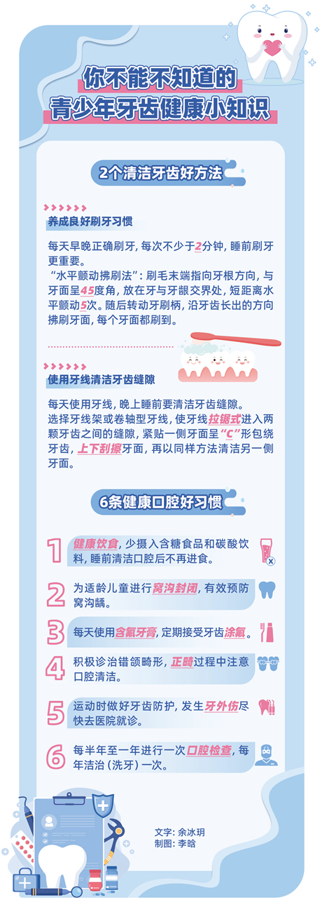 2022年9月20日是第34个“全国爱牙日”,今年的爱牙日主题为“口腔健康全身健康”,副主题是“护牙健齿少年强健康中国民族兴”,并发布《青少年口腔健康核心信息》。青少年口腔健康正在成为社会共同关注的问题。