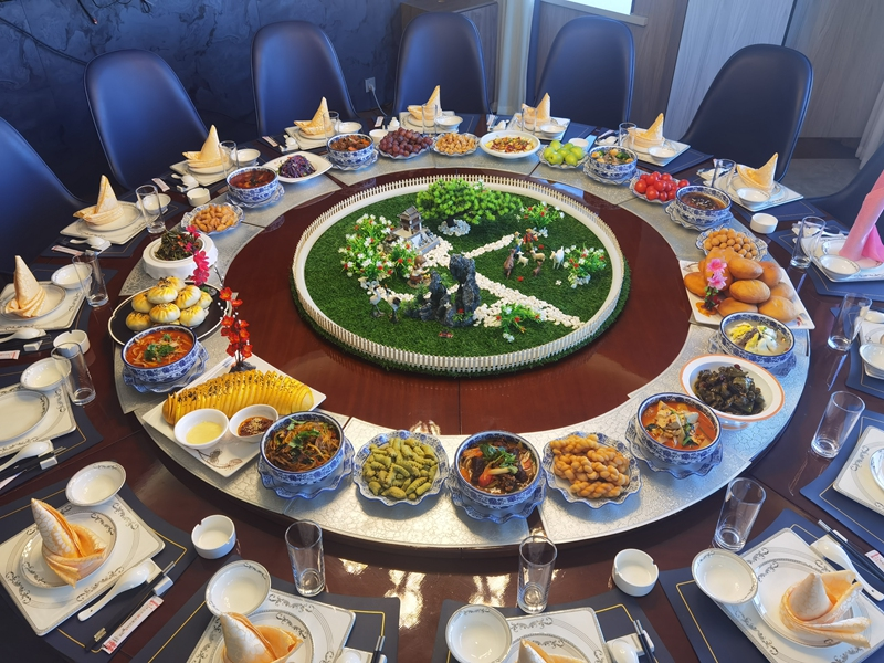 后来,在九碗的基础上又增加了四个凉菜,加起来是“十三”,而“花”则是各种水果、干果、面点的总称。这样,一桌备齐,可谓荤素搭配、口味相宜,煎、炸、炖、炒、焖样样齐全,是老百姓餐桌上的“满汉全席”。