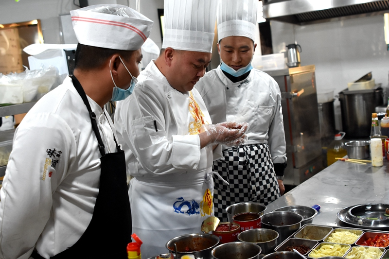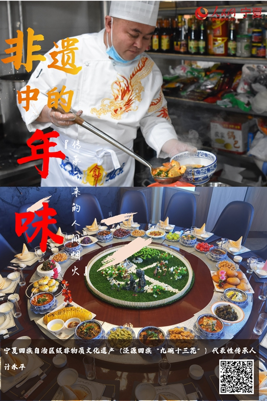 但是,随着餐饮业的发展,民间会制作“九碗十三花”的人也越来越少。为了不让其失传,厨师计永平在数年时间里,走访多地,拜访多人,挖掘整理并潜心练习,终于掌握了“九碗十三花”的制作方法,成为了“九碗十三花”自治区级非物质文化遗产传承人。如今,在计永平的餐馆里,“九碗十三花”不仅成为了待客的招牌菜,更成为来客了解泾源民间饮食文化的“窗口”。