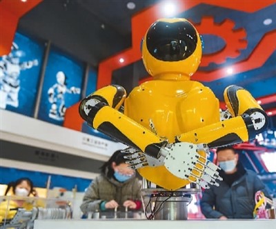 寒假期间,不少家长带着小朋友来到河南省洛阳市科学技术馆,沉浸式体验科技的独特魅力,让孩子们在寓教于乐中度过一个科技范儿十足的寒假生活。图为观众在洛阳市科学技术馆体验机器人科普设备。