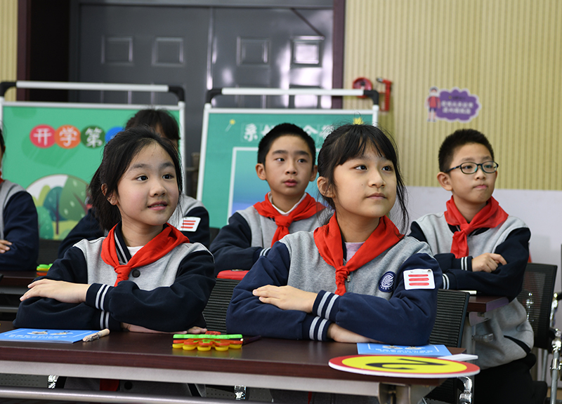 2月13日,芳草地国际学校的学生在开学第一课上听讲。人民网记者王晓啸摄
