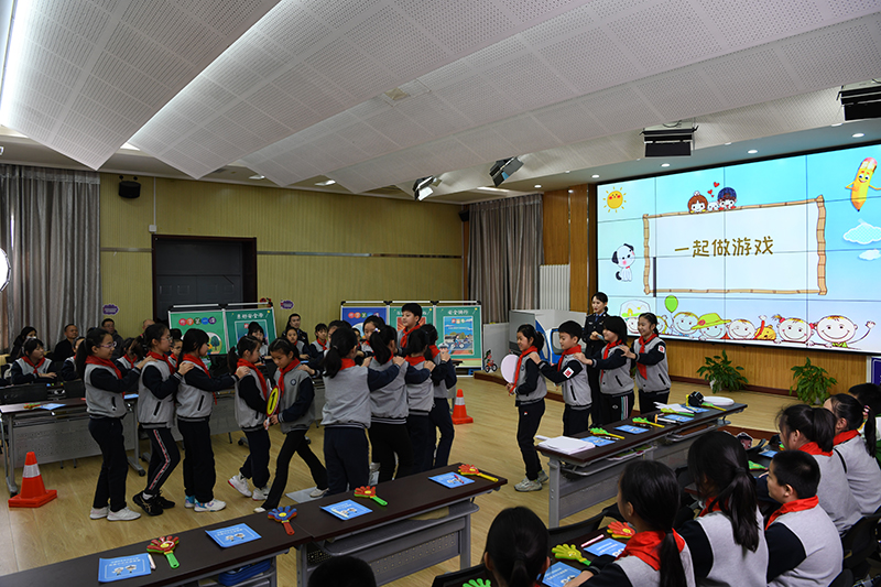 2月13日,在芳草地国际学校开学第一课上,学生们通过游戏了解交通安全知识。人民网记者王晓啸摄